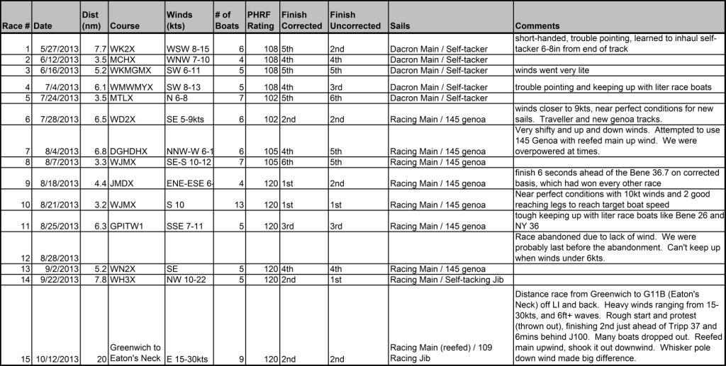May 27, 2013, dist. 7.7nm, courseWK2X, winds WSW 8-15. Gemini was 2nd