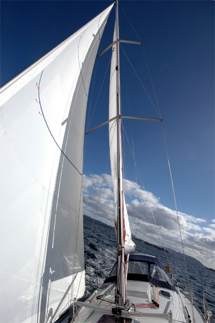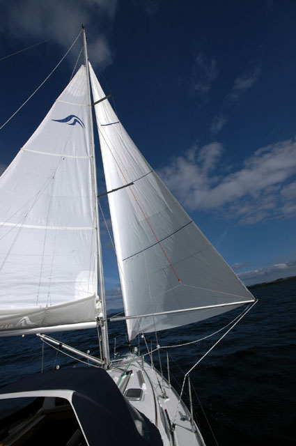 - The self-tacking (85%) jib is very good sailing close to the wind. Possibly better than the 140% Genoa.