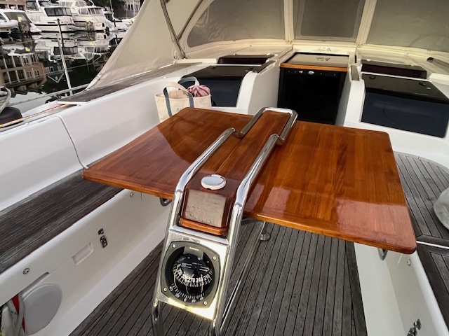 am refurbishing our cockpit table leaves on our 415 and wanted some advice as to re-staining or varnishing the wooden surface. Is the table solid teak OR veneer over plywood? regards Andrew Atomic Blonde Fremantle Sailing CLub
