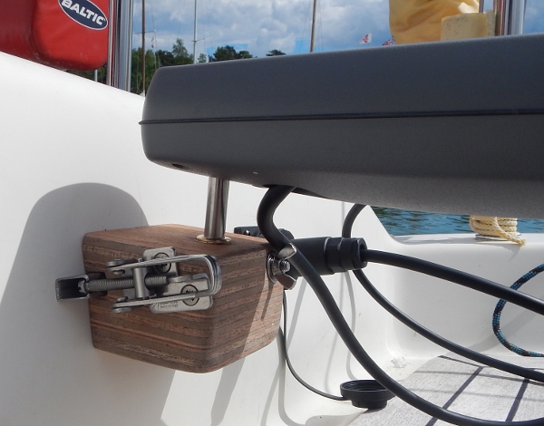 I have taken some pictures to show you how I mounted the TP32. The mounting on the cockpit side was made from some greenheart wood I had lying around - very hard and durable, but any hardwood would work just as well.