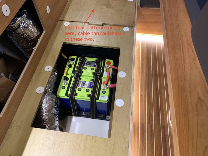 The FIREFLY G31s at 116AH, so with 6 I ended up with almost 700AH in the bank.    In testing with only 4 batteries,  I found I could draw down to 50% and still have 12.75V showing.    Far better than the Victron batteries.    I then decided to go ahead and add the last 2.