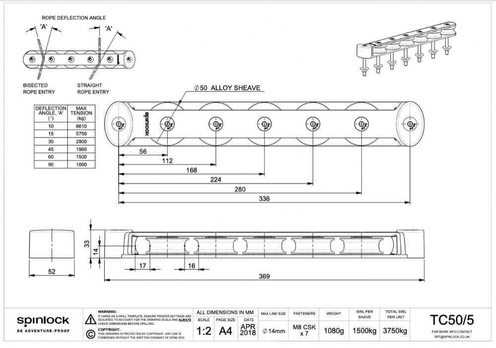 Not sure if the 545 has the same tunnel sizing as the 575. If you look at the picture, its possible that 14" (355mm) could be supported, but the Harken 5 sheave system requires 15" according to one web page I saw. Another says 11 is all that is needed. At this point, I'm leaning to the decision Wayne made (the high load Spinlock system). While it doesn't have the working load of the Harken system, it does have double the strength of the current setup. If it hangs in there for at least 2 years, I guess I can live with that result. The Harken setup is expensive. ![]() This is the current TC50-A Spinlock on the boat. The heavy loads appear to have distorted it and the sheaves have failed. Just replacing the sheaves costs more than half the cost of the high load unit, so that doesn't seem smart. As you can see there is about 13 1/2" available. This translates to about 344mm. Here are the specs for the Spinlock high load option. ![]() The existing holes can be re-used as the drill pattern is the same. That said, one more hole seems required in addition to what is there. The overall length is 336mm. I am speaking with the Harken people tomorrow (not much over the weekend) as they seem to have conflicting information on diagrams and web pages. One says the Harken organizer is 15" long. The other says 11.something inches long. One might work. The other clearly won't. When I find out, I'll post the results and final decision here. |