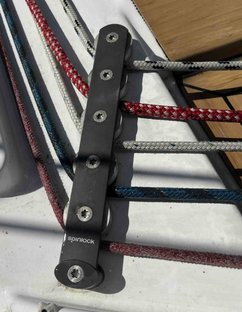 So I was concerned that the lines were seeing more friction than before and decided to take off the "tunnel covers" that run down each side of the boat. Sure enough, the sheaves were turning with a lot of effort and it really took the winches to move the lines thru the system. The mainsheet, for example, could not be pulled thru by hand except when there was really a lot of slack in the system. OK... so break out the tools to remove and lubricate the sheaves. Still not really doing the job. Called my rigger for his advice and he tells me the Spinlock T50's (asymetrical) that are on the system are undersized for the boat, and running 14MM halyards and sheets thru them along with membrane sails and the loads expected is a problem. Its interesting that Hanse put the T50 on the boat, but had the higher strength alloy sheaves. It doesn't come this way. Normally it ships with the composite sheaves, which are less strong. They must have known it was marginal. The base SWL for the T50 is 1650lbs. I'm looking at options to address this, and it seems like the following list: 1. Just replace the sheaves and hope for the best. These are about US$30 each and it would take 5 per side so about US$350 in total. I might get a season or two of improved use before these failed as well. Same SWL to be expected). 2. Replace the T50 with a "high load" Spinlock T50. This has a slightly stronger frame and the alloy sheaves. It has the advantage of using the same drill holes (56mm) but needs one more hole to be drilled. This improves the SWL to about 2650lbs (per sheave) and strengthens the frame so it would likely not distort causing sheave damage. This ends up costing about $400 each side but you get a stronger setup for about twice the money of (1) above. 3. Replace the T50 with a Harken Big Boat organizer. This requires drilling and tapping new holes, but the SWL moves to about 4600lbs per sheave and my rigger tells me this will run nicely and address the problem properly. Unfortunately, these organizers cost about US$1000 each, so its an expensive option. One of the things I am worried about is fitting it between the ends of the tunnel cover. If you see the current setup, its close to the edges and something needing more real estate might not work. See pics of the three below... ![]() The current T50 (Asymetrical) ![]() This is the "high load" version of the Spinlock T50 (same drill pattern, one more hole) ![]() This is the Harken Big Boat 5 sheave setup. New everything. New drill pattern, need to check overall length a bit more. Has anyone else done this upgrade? What did you do? |