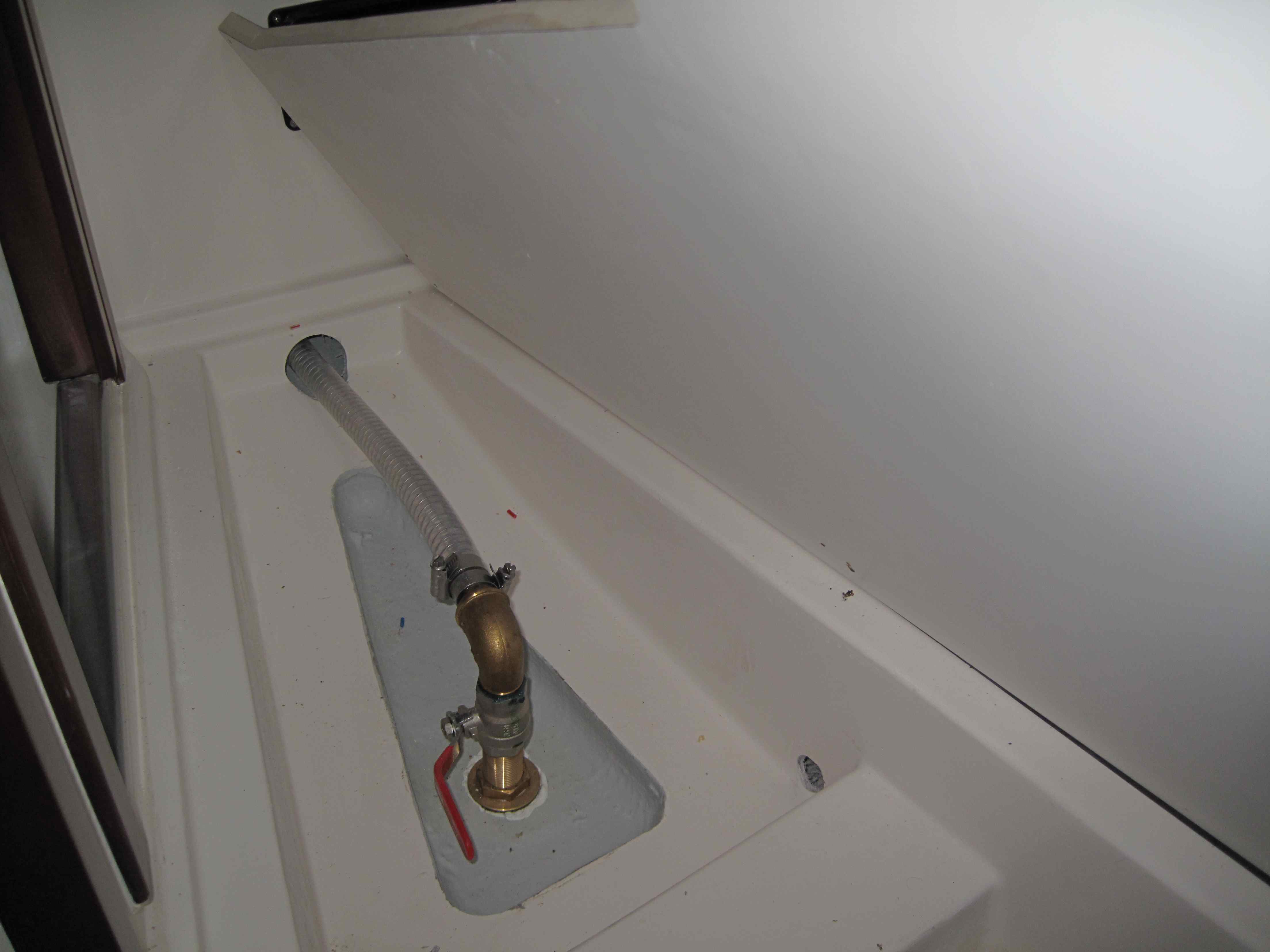 The positioning of the heads water inlet on the 325 now seems to be different to the 320 where it is under the vanity basin in the heads, and is easy to access. There should be an access hatch in the floor above your sea cock. Unless you can cut one neatly yourself, I suggest you insist that your dealer sends you a new floor board (as it is not too large an area) with an access already cut in.