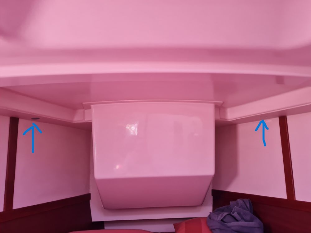 In our H400 forecabin, on the ceiling just inside the hull on either side of the anchor locker are two discs. See photo. Does anyone know what they're for? I'm thinking that they might be either: