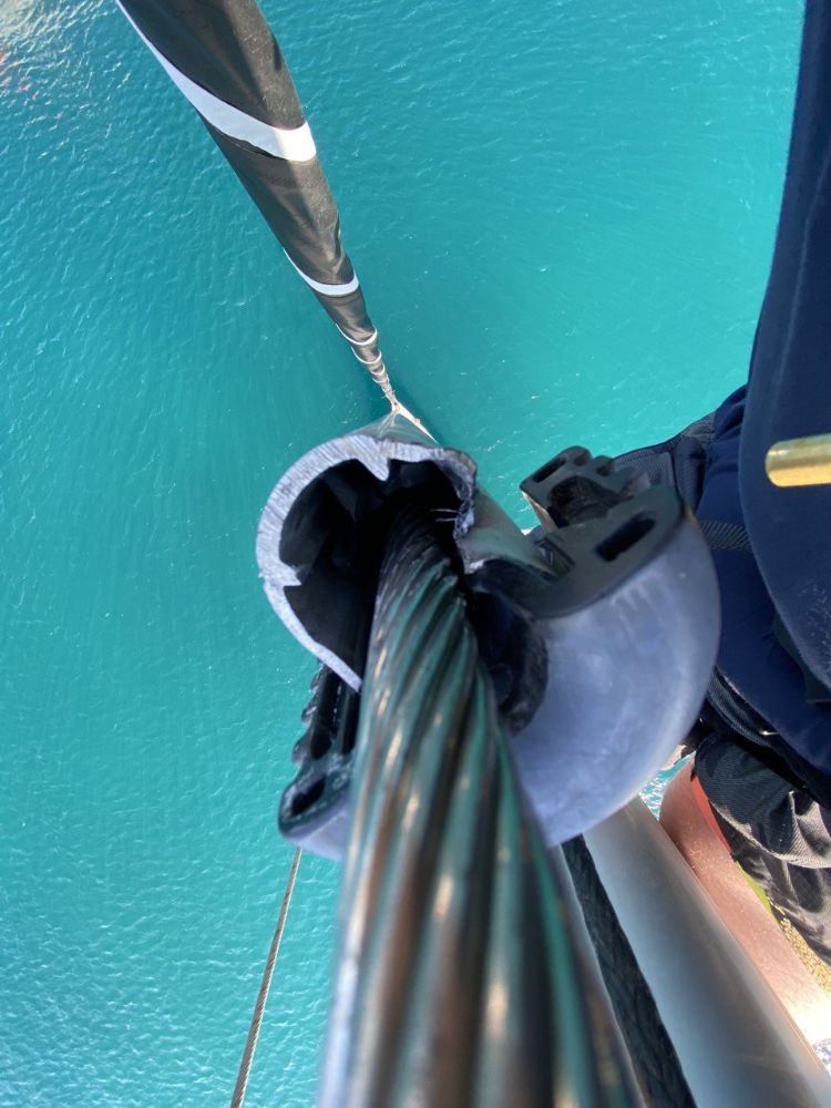 in 2020, some expert but self-assured sailor kept running the electric winch badly to furl the jib. But the swivel at the top was not rotating, because the forestay was not tensioned enough...we stopped too late the brute force attempt. To a more careful analysis, we noticed that the furling jib swivel had transfered the rotation torque to the forestay, and the steel therefore unwound: it was visibly deformed in the area near to the swivel - see pictures. Story short: I had to replace the forestay, and since then i always start my furling manually - shifting to electric winch when i lose my breath.... the pictures explain more than a thousands words. My message: if you don't understand why it broke - point the finger towards the electric winch! ![]() ![]() ![]() ![]() Edited by Pzucchel - 10 March 2026 at 10:47 |