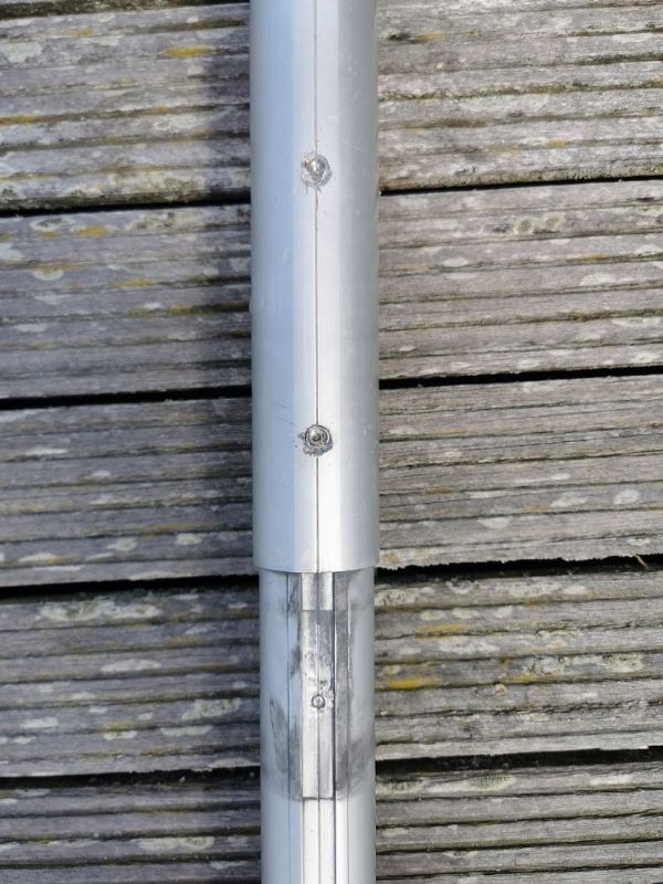 The next task was to remove the furler from the foil, knowing that the bottom bolt, that sticks proud was already seized the only option was to cut the telescopic section and withdraw the forestay. This is when I discovered that there is a plastic 'bearing' insert at the bottom of the section too, this had to be drilled out to enable the removal of the forestay.