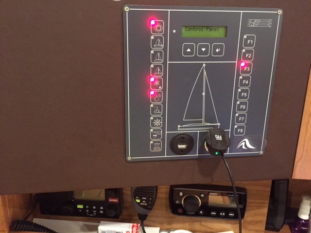 Wayne, thank you for your very helpfull reply. I am on holiday sailing  in  France and do not have a multimeter here. But I could test by swapping the fuses. The red light on the fuse panel is blinking and this indicates a broken fuse.
