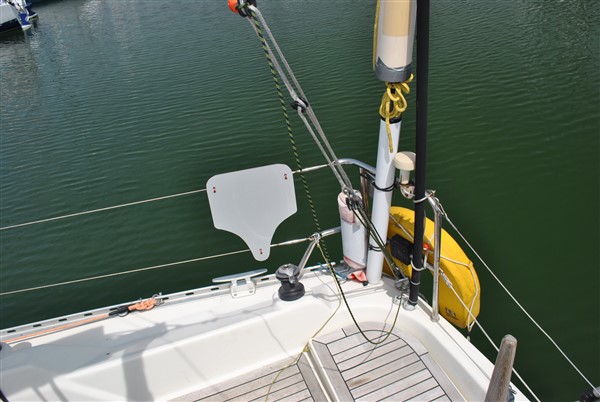 As  well as that I made my vang & backstays fom 6mm dynema cascades using friction rings. The final fall of the backstay cascade has a 4:1 set of blocks with 4mm vectran. That set up gives me 32;1 & is far lighter than the original Hanse setup.