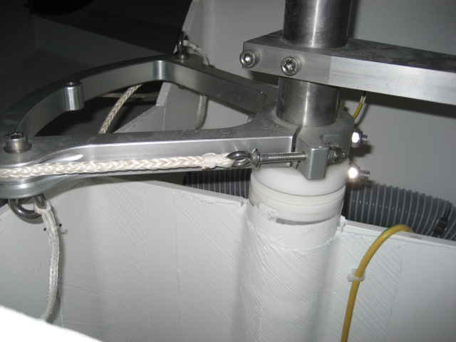 There is no force on the tube, the ruddershaft is fixed below in the hull at at the upper end in the deck. Nevertheless the tube ist laminated to bulkhead - better than on my former ship ( hanse 342 ). There it was standing free and was fixed nowhere.