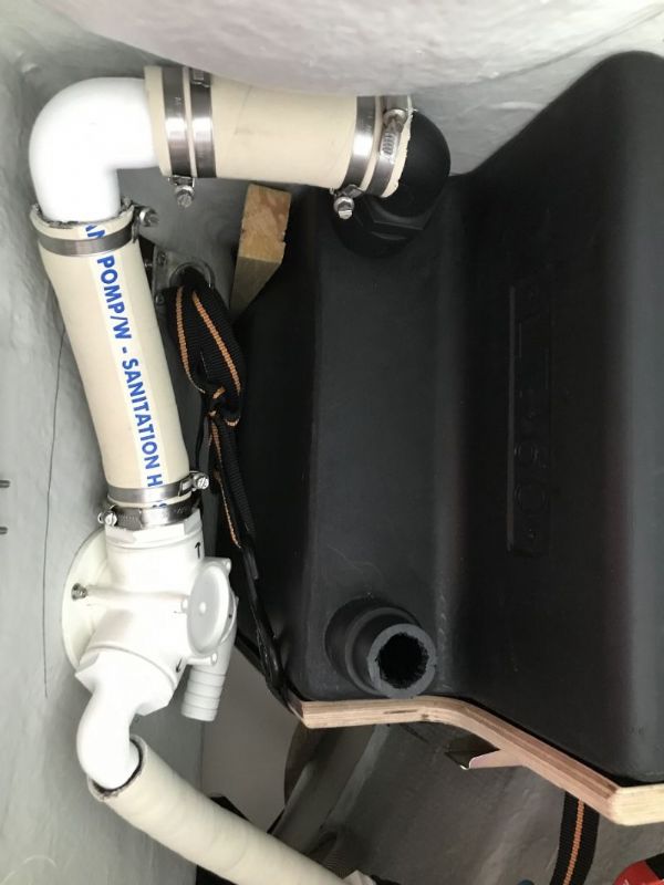 I ripped out the head and the original tank two years ago, and changed to a macerating head. Pictures below. I found a tank that just fit the space underneath the bathroom countertop. Its suspended in the ceiling with cargo straps. The bottom of the tank its just above waterline, so gravity will drain it. Tank: https://webshop.nettbaat.no/products/septiktank-plast-60-liter?gclid=EAIaIQobChMI-In--Y_C8wIV2RkGAB1ecg66EAQYAyABEgKoC_D_BwE There are a lot of hose connections on the discharge line, but this was to avoid bending the hose too much. Bending the hose too tightly (stretching the material) its not good for its permeability. So far it has worked fine. ![]() ![]() ![]() ![]() |