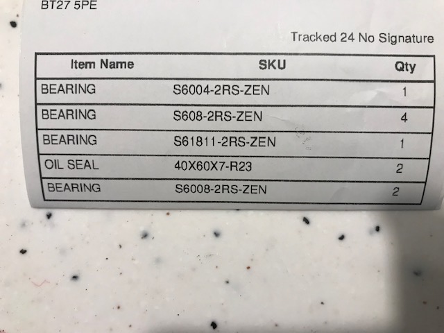 These are the type and numbers for bearings required (all stainless) and the oil seal, although I bought a spare oil seal.