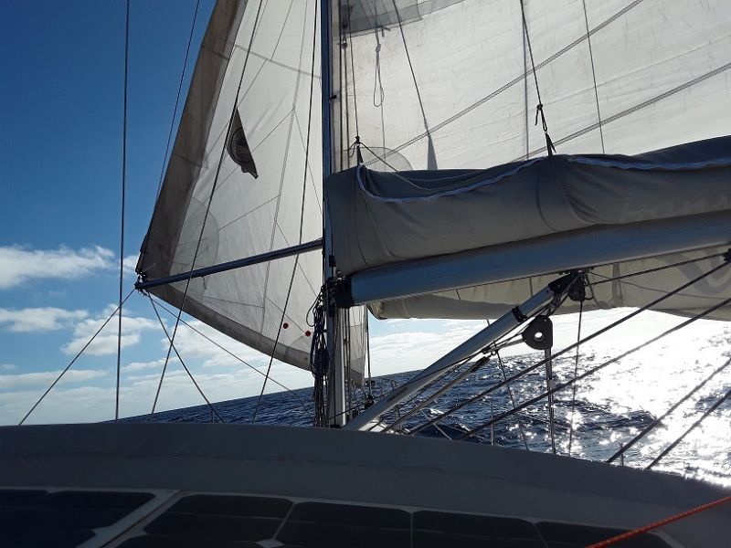 The length of my spinnaker pole is 4m. I use it with the 28m self-tacking jib, we thus covered 17 days from Cape Verde to the West Indies with the spinnaker pole on one side or the other. I also have a gennaker of 63 m2 but it holds by itself if there is not too much swell, for that I put the mainsail under the false breakdown with a boom restraint. ![]() ![]() |