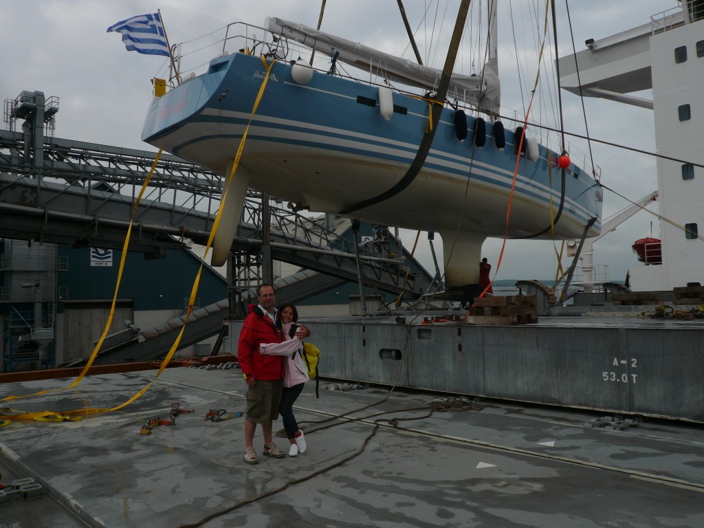 I am wondering, that your boat is only fixed (as i see on the fotos, may be i am wrong) on 4 bearings on the fotos on the cargoship. As far as i am informed, Hanse says that epoxy hulls should be supported on more than 4 points, better 6 or 8. That was the reason, why i did not order a epoxy hull because no harbour has something like this here.