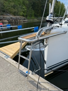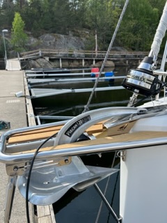 Got the anchor installed today. The choice fell on the Rocna Vulcan 20kg. There was also time to install a ladder underneath.