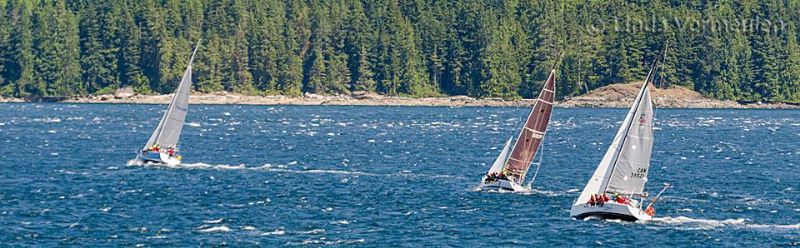 A couple more pics including Rubato leading a CM1200 (Raven) and a Farr 395 (Aduril) to windward in Johnstone Strait. Wind was in the 30s at times...