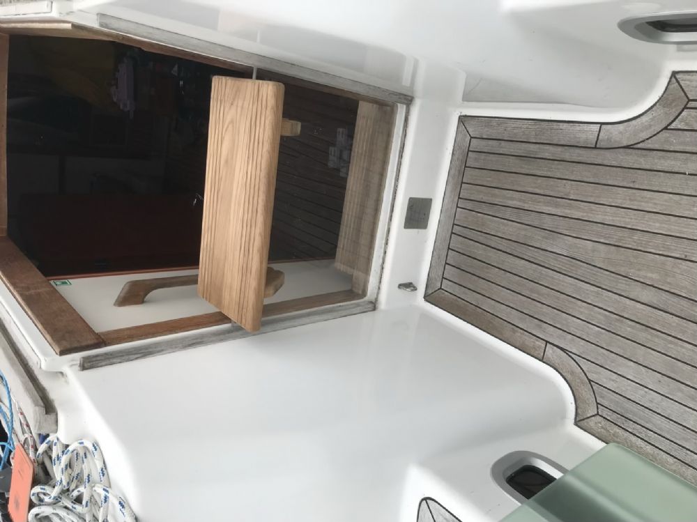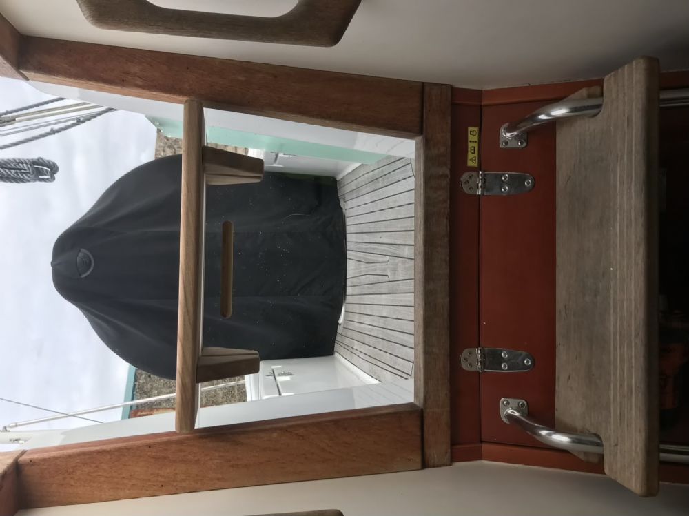 Iain, that is a great job and I’m going to look into doing something similar to my 370. What I have done is make a half hatch and a seat top for it. This works well when single handed but isn’t great when there’s additional crew onboard and the weather isn’t compliant. When underway it’s very comfortable when the heating is on low and warm air is gently flowing past you and your coffee cup sits nicely on the high side.