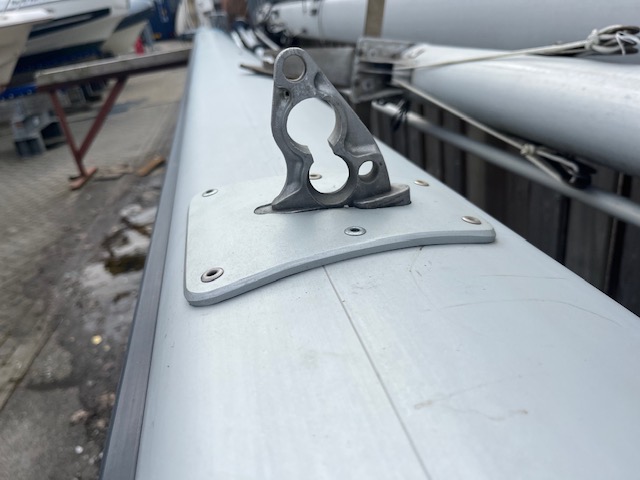 My question here is related to the spreaders. We recently had an issue that wattanted having riggers go up the mast for an inspection. We’ll share more about that we we have a clearer understanding. In the process of inspecting the standing rigging, they found a crack in a spreader near the base. They tell us this is a common problem with the design due to the small amount of material between the inner pins and the inner edge of the spreader. So, they say, we should address this issue at all the spreader to mast joints.
