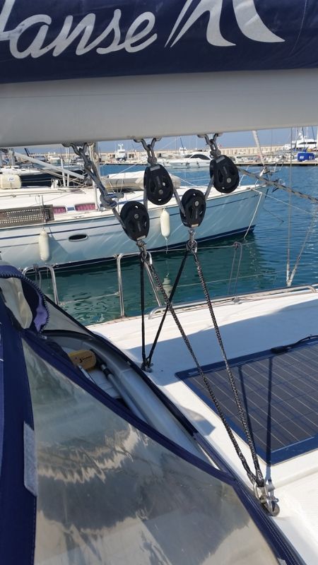 just fitted my new improved bridle on the main, the old one has been in place for 3 years and 500 miles, but this set up is better i think.