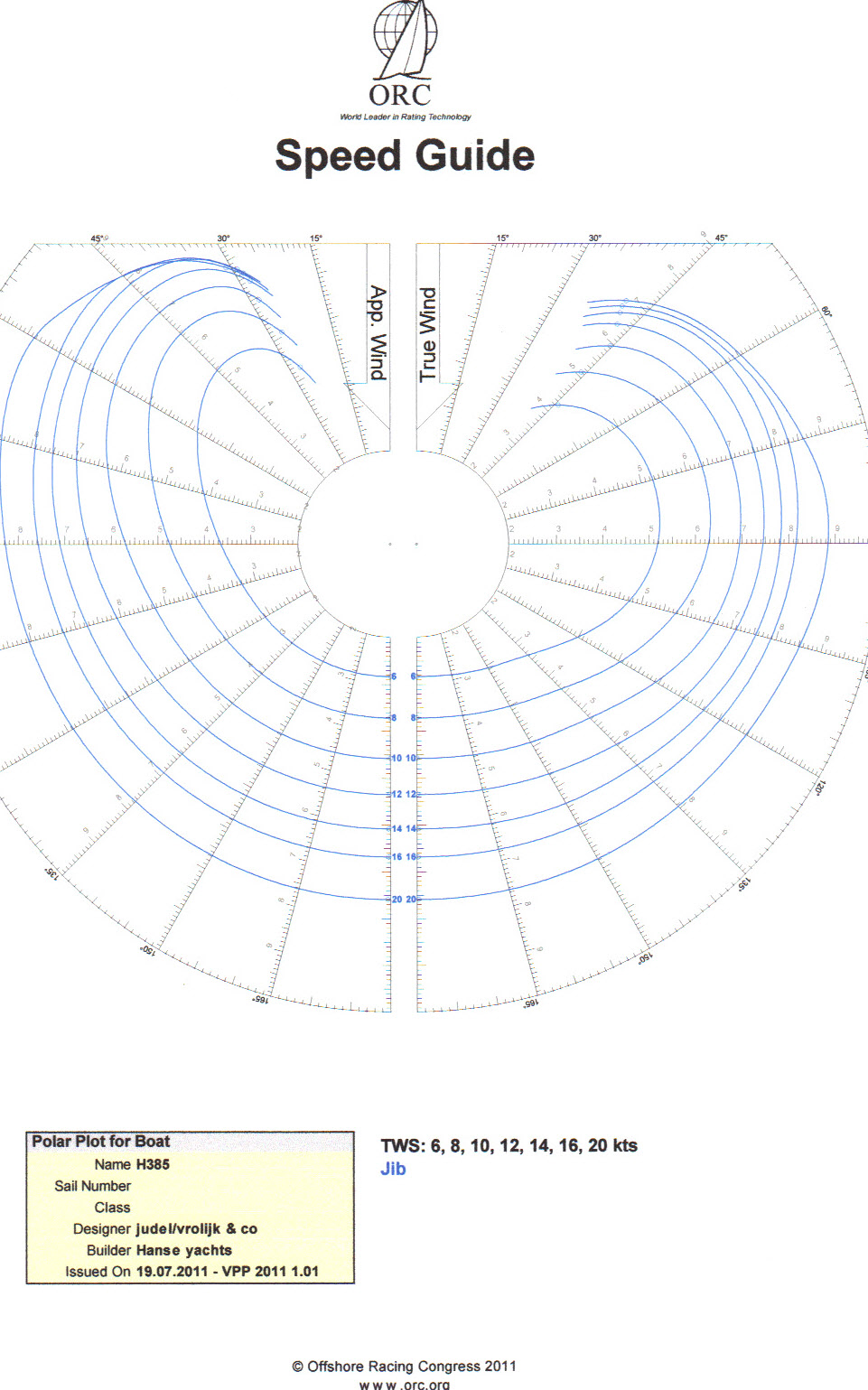 Attached for information is the Polar Chart for the 385 I was using as a reference point, note Jib not Genoa configuration, at the end of the day the proof will be in sustained performance. One other point I should make is the Volvopenta engine (29hp) & 2 bladed flexifold prop appears to deliver much better motoring speed at lower RPM than my old 29hp Yanmar & Kiwi Prop on Renegade; hopefully also better economy....we will see.