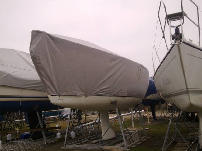I have lifted my boat out of the water every season, dismounting mast, putting on cover etc. It's quite a lot of work every year and you still have to visit the boat everytime there is a storm. So this spring after launching with new antifouling etc. I have decided to leave the boat in the sea next winter. I know that Norwegians and people in the Meds often leave the boat in the water. Does anyone have experience with a winter cover for the boat. I have seen solutions with PVC and Fiber tex but not really sure witch way to go. Advantage Fibertex - lighter and easy to handle. Advantage PVC - handles vertical vaterpressure better. Pictures would be great. Thanks in advance. |
