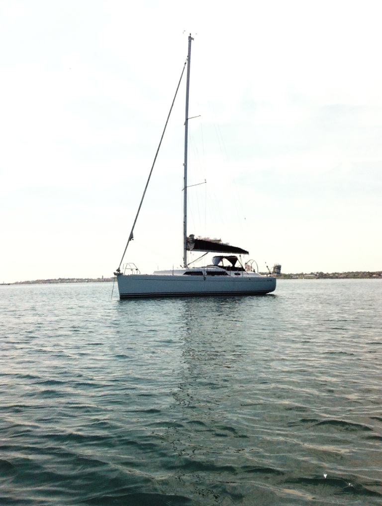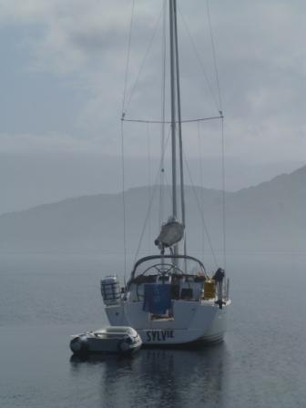hi all , here is sylvie anchored off the copeland islands....in church bay......we are returning to boat after a great walk in the sunshine.....photo taken with i-phone so not great quality